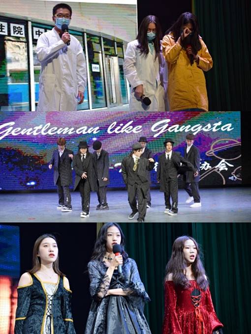 来自2001班和2002班共同演绎的《山河无恙,英雄归来》再现了医者风采,该节目通过小剧场与歌曲结合的方式向观众传递了伟大的抗疫精神。西装加身的TGC街舞协会给我们带来了舞蹈《Gentlemanlike Gangsta》,其动感的旋律与帅气的舞姿将晚会推向高潮。校歌队的歌曲串烧《Musical Paradise》娓娓动听,令人沉醉。来自2013班的节目《Tough Love》也惊艳登场,其表演将后妈们的性格表现得淋漓尽致。