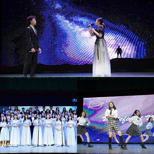 院歌队的《The Milky Way》带来了来自银河系的歌声,温柔浪漫,如梦如幻。2007班和2008班共同演唱《夜空中最亮的星》,运用朗诵和合唱等表演形式让观众仿佛置身在满天繁星中,扣人心弦。18级和19级的同学们带来舞蹈表演《Undefined Me》,他们以震撼的音效和流畅的舞步燃炸全场。
