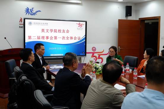 本网讯 2020年12月11日下午,广东外语外贸大学英文学院校友会第二届理事会成立大会在广外大北校区第七教学楼412会议室成功举行。大会由英文学院党委书记林绍雄主持,出席大会的领导有广东外语外贸大学副校长何传添、校友事务与合作发展处副处长毕建永、英文学院院长张欣、党委副书记黄晓梅、副院长韩锐、吴庄和刘胡敏等,其他出席人员有现任、候任校友会理事会成员、校友代表等。