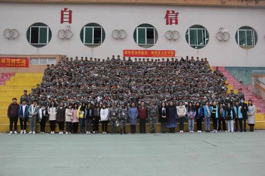 学院领导老师等与军训新生合影