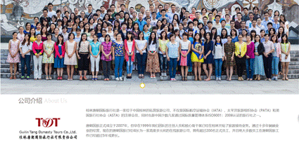 桂林唐朝国际旅行社是一家位于中国桂林的私营旅游公司,不仅是国际航空运输协会(IATA)、太平洋旅游组织协会(PATA)和美国旅行社协会(ASTA)的注册会员,同时也是中国少数几家通过国际质量管理体系ISO9001:2008认证的旅行社之一,正式成立于2007年,现已成长为一家多元化的在线旅游公司,拥有超过200名正式员工,并且绝大多数员工在唐朝国旅工作已经超过5年或更长的时间。