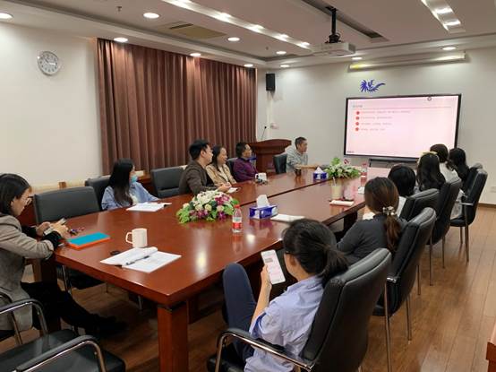 本网讯 3月12日,为进一步提高我院的中外合作办学水平,促进其良性可持续发展,英文学院在七教412会议室召开了中外合作办学项目管理机制学习交流会。英文学院党委书记林绍雄、党委副书记黄晓梅、全体辅导员、全体行政人员参加了会议。会议由英文学院中外合作办学项目日常管理负责人郑常青老师主持、主讲。