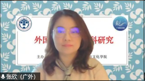 广外英语语言文化学院院长张欣教授在开幕辞中介绍了学院优秀的学术传统与扎实的学术成就、学院在跨学科研究与专业领域研究中的创新尝试及其成效,并邀请专家学者来广州进行交流。