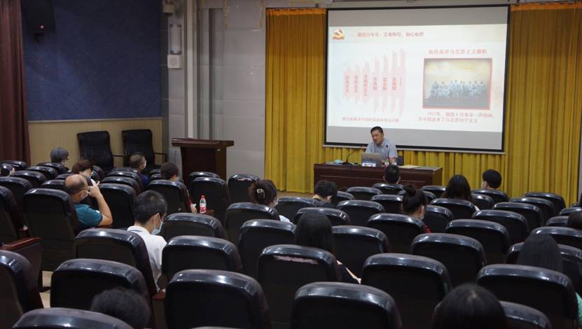 本网讯 为深入推进党史学习教育,切实做到学党史、悟思想、办实事、开新局,6月17日下午,英文学院党委邀请我校党委书记、百年党史宣讲团团长隋广军教授来学院作“从百年党史中感悟初心使命,以优异成绩献礼建党一百周年”的主题宣讲。宣讲会在北校区第七教学楼水上报告厅举行,参加人员有英文学院和文科基地的负责人、系部办主任、全体党支部书记和委员、辅导员、办公室人员等。