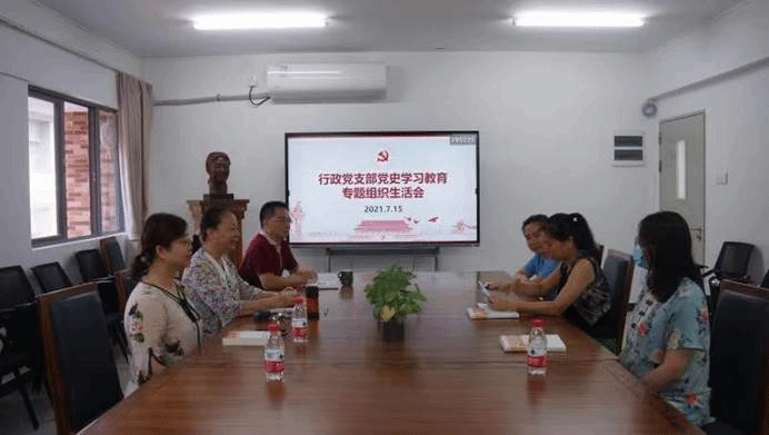 2021年7月15日上午,英文学院行政党支部在一教446会议室召开党史学习教育专题组织生活会,会议由行政党支部书记陈宇明主持。