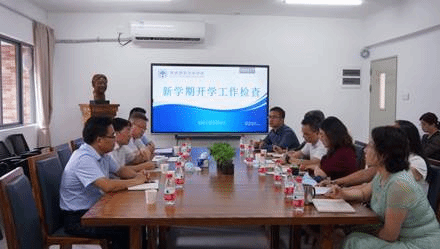本网讯 9月6日上午,校党委副书记李云明率队莅临我院指导新学期开学工作。党办、校办主任谢伟光,党委学生工作部部长、学生处处长谢应东,保卫处副处长林安杰,学院院长张欣、党委书记林绍雄、党委副书记黄晓梅、副院长韩锐、吴庄、刘胡敏和办公室主任夏玉坤等参加了工作检查汇报交流会。