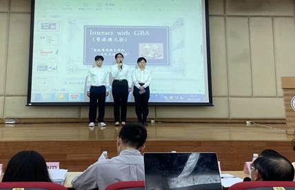 之后,学术科技类队伍展示他们的社会科学类调查报告和学术论文。其中林沐欣等同学带来作品“大湾区发展背景下广州城市语言景观和形象构建”。在大湾区整体语言景观未能充分突显岭南文化的背景下,他们结合了广州和国际城市形象构建经验,强调要坚定文化自信,兼容并蓄,实现大湾区城市形象构建本土化和国际化的的双赢。研究充分展现了他们的民族认同感和社会责任心,具有广阔的国际视野。其余九支队伍聚焦社会痛点,覆盖“碳中和”、传统文化短视频、一带一路、乡镇教师测评等当下时事热点问题,用多种方式调研,以新时代青年的身份,提出独到而有思想的见解,深刻展现了英文学子的家国情怀。