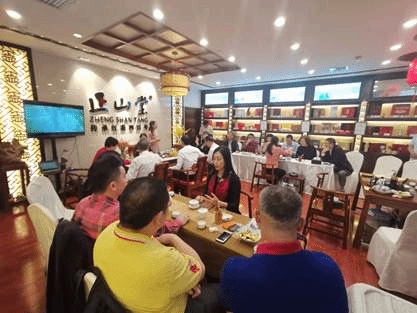 本网讯 2021年11月28日,在迎来母校广东外语外贸大学建校56周年纪念日之际,英文学院校友会第二届理事会在广州大厦二楼“正山堂旗舰店”举办以“名茶品鉴”为主题的校友联谊活动。来自不同时期的20位英文学院校友参加活动,英语学院新任党委书记王则唐出席活动。理事会秘书长、87级校友谢杭东主持活动。活动由理事会执行会长、83级校友马缨和谢杭东秘书长策划组织并得到88级校友莫婉洁的大力支持。