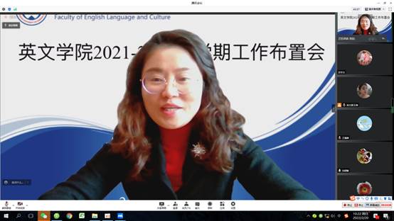 本网讯 2月20日上午,英文学院通过“腾讯会议”线上平台召开2021-2022学年度下学期开学工作布置会。会议由党委书记王则唐主持。全体院领导和教职工出席会议。