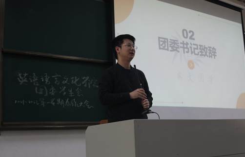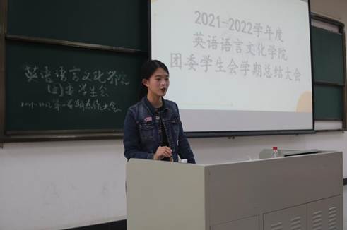 本网讯 3月10日下午2时30分,2021-2022学年度英文学院团委学生会学期总结大会在二教219举办。英文团学轮值主席戴婉柔主持了本次大会。英文学院21级辅导员兼团委书记马骁以及英文团学全体成员出席会议。