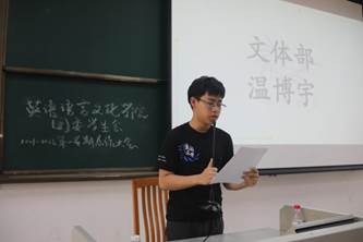 中场游戏过后,学生会各部门进行工作总结汇报。