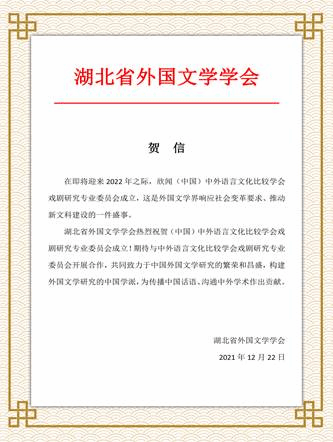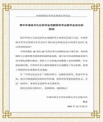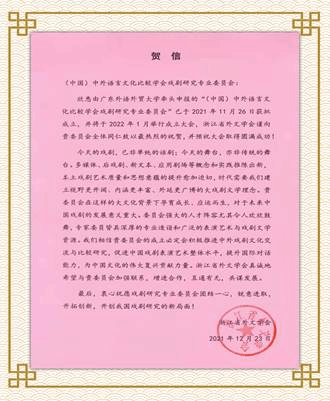 本网讯 1月11日上午,(中国)中外语言文化比较学会戏剧研究专业委员会成立大会暨外国语言文学学科发展专家咨询会在我校北校区召开,会议采取线上线下结合的方式进行。相关领域专家、学者齐聚云端,共同探讨中国戏剧文化对外传播、中外戏剧比较研究以及跨文化传播人才培养等的新方向、新机遇、新挑战和新对策。此次大会由(中国)中外语言文化比较学会戏剧研究专业委员会主办,广东外语外贸大学英语语言文化学院承办。副校长何传添教授、(中国)中外语言文化比较学会会长吴笛教授在揭牌仪式后分别致辞。