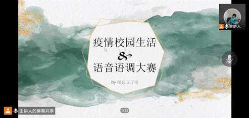 语音语调大赛和趣味运动会即将到来,冯天琳为同学们讲解了赛事的相关流程并鼓励同学们积极参与。同时也告知同学们学校体育运动场地灯光调整的最新情况,鼓励同学们积极锻炼身体。