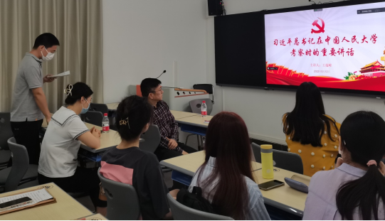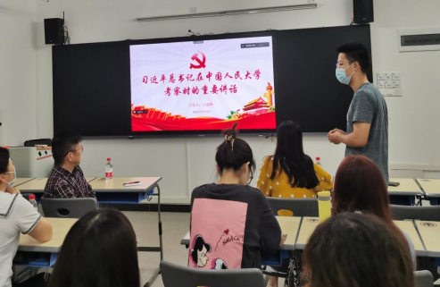 2022年5月12日,为深入学习习近平总书记在中国人民大学考察时的重要讲话精神,英文学院文学文化方向学生第四党支部联合语言学和翻译方向学生第三党支部开展以“争做堪当民族复兴重任的时代新人”为主题的专题学习,会议邀请学院党委委员王蕴峰老师做学习指导并讲话。两支部书记韩丹老师、王晶老师及全体党员同志参加学习。会议分别在腾讯会议和1教南楼312,以线上线下相结合的形式开展。