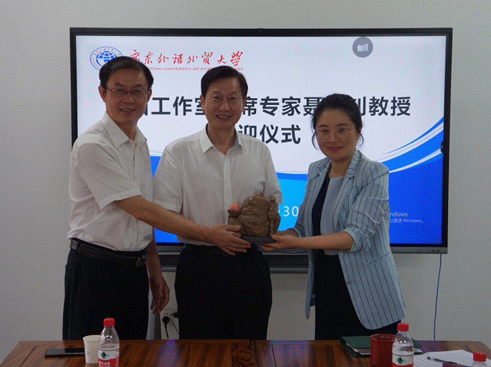 欢迎仪式上,王则唐与张欣共同向聂教授赠送了意寓安康吉祥的紫砂寿星,祝愿聂教授学术之树常青,思想之花长开。据悉,在接下来的一周,聂教授将在我校多个外语学科建设单位进行深度学科调研。