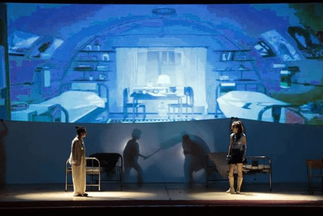 从舞台的布景及其蕴含的信息来看,XNA独具匠心,生动地上演了一出好戏。在第二幕中,剧组突出实验室的部分,刻画出仿生人的艰难处境,李博士的偏执疯狂,老板的利益至上,从而让卓伊深受触动,为之后与人类安娜的冲突埋下导火索。舞台后侧中影子的对打,目的在于向观众提供安娜与卓伊的内心视角,同时也打造出视觉上的冲击,抓住观众眼球。最后一幕,安娜醒来发现是一场噩梦,但她终究决定将仿生人的命运交还给他们,于是她给卓伊写信。在安娜独白的最后,卓伊和安娜对望,安娜向卓伊伸出怀抱代表着人类的妥协与宽容,卓伊犹豫了,但终究还是选择接受这一示好,毕竟枪响之后没有赢家。卓伊她已经有了安娜的记忆,所以她的最终选择是Live with Ana,成为Android。