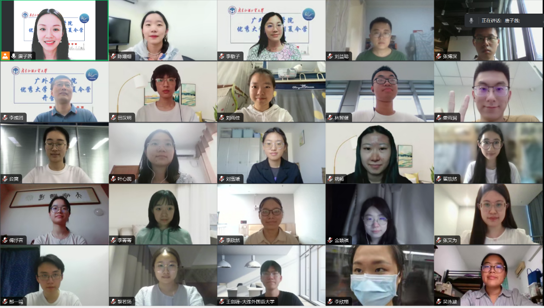 英文学院院长张欣教授、学院党委书记王则唐、副书记王迪、副院长刘胡敏教授、副院长李成团教授、研究生工作办公室主任李敏子、副主任唐子茜等出席开营仪式。在开营仪式上,张欣院长受邀致开幕词,对英文学院的师资力量、各个学科的综合实力和发展情况进行了简要介绍,使营员们对广外英文学院有了更清晰和更深入的认识。