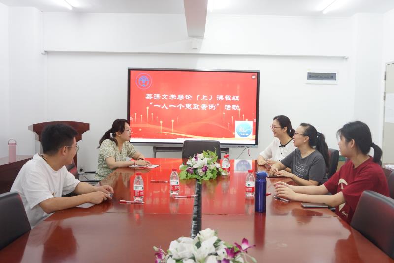 本网讯 英文学院英美文学系开展“一人一个思政案例”研讨活动。2023年6月8日,英语文学导论(上)课程组集中在一教北451分享各自的教学案例,并展开讨论。活动由英美文学系主任付晶晶主持。