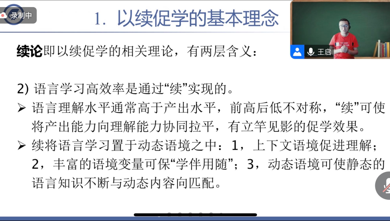 本网讯 6月29日下午,英文学院在腾讯会议举办题为“以续促学的操作技巧:多轮续写及其它”的线上讲座,英文学院本科生和研究生六十余位同学与来自各院校的老师参与了此次讲座。主讲人是广东外语外贸大学《现代外语》编辑部编辑、广东外语外贸大学外国语言学及应用语言学研究中心兼职研究员王启老师,主持人是我院杜寅寅老师。