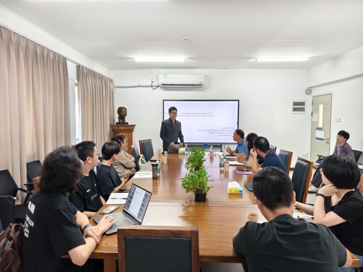 本网讯 2024年9月11日上午,菲律宾马尼拉大学教授、Kritika Kultura(A&HCI)主编Vincenz Serrano教授应邀做了一场题为“Walking, Poetry, and Manila as Archipelagic City”的学术讲座。此次讲座在广东外语外贸大学英语语言文化学院李筱菊教师发展中心举行,由刘茂生教授主持。菲律宾圣托马斯大学Maria Luisa Torres Reyes教授、英文学院邱小轻教授、许景城老师等校内外专家学者,以及广外博、硕士研究生出席了讲座。
