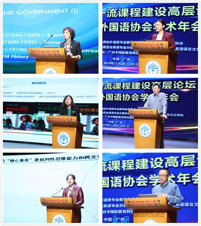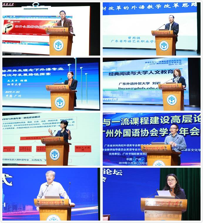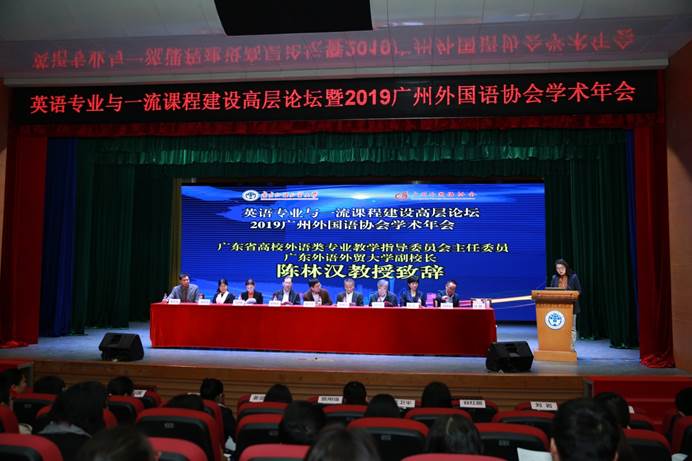 本网讯 为了促进英语专业国家级一流专业建设,2019年11月29日至12月1日,“英语专业一流课程建设高层论坛暨2019广州外国语协会学术年会”在我校举行。本次论坛由广东省本科高校外语类专业教学指导委员会、广州外国语协会、广东省本科高校外语类专业教学指导委员会英语专业分委员会、广东外语外贸大学英语语言文化学院共同主办。本次论坛分为主旨演讲、英语专业与一流课程建设圆桌论坛、平行学术论坛和课程展示与教学研讨四个环节,大会围绕《外国语言文学类教学质量国家标准》和国家级一流专业及“金课”建设展开了热烈讨论。来自国内60多所院校和研究机构的200多名专家学者参加了本次会议,其中包括教育部外语类专业教学指导委员会专家及国内相关院校专业负责人。