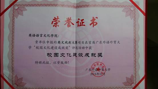 3) 2011年获广外大英文学院“认真奖教金优秀团队”称号;