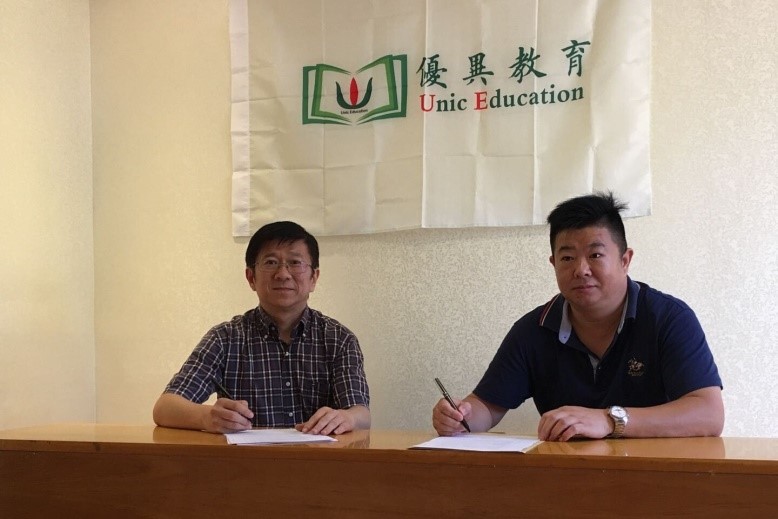 本网讯 7月22日,广东外语外贸大学英文学院与珠海优异教育有限公司共建实践教学基地挂牌仪式在珠海顺利举行。学院党委王斌书记,英语教学部主任王蕴峰博士、翻译系胡正茂博士,优异教育张廷忠总经理,胡碧辉执行校长等出席了仪式。