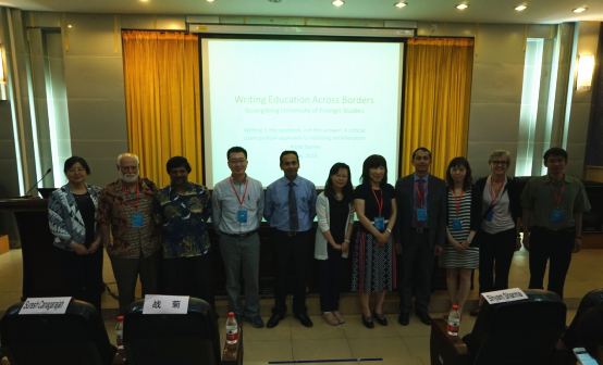 本网讯 “英语写作教育全球化研讨会”于5月21日-22日在我校成功举办。本次会议由英语语言文化学院承办,吸引了来自美国、英国、日本、澳大利亚、韩国、中国台湾、香港、澳门和中国内地共110多名代表参加。本次会议由我校云山讲座教授游晓晔与长期致力于写作教研创新的郑超教授精心策划,邀请了阵容强大的专家学者出席,其中包括美国宾夕法尼亚州立大学Edwin Erle Sparks讲席教授Suresh Canagarajah,澳大利亚格里菲斯大学兼英国伦敦大学教授Andy Kirkpatrick,默多克大学教授Anne Surma,香港中文大学教授Icy Lee,日本名古屋大学教授佐々木みゆ(Miyuki Sasaki),台湾政治大学外文中心主任刘怡君等。