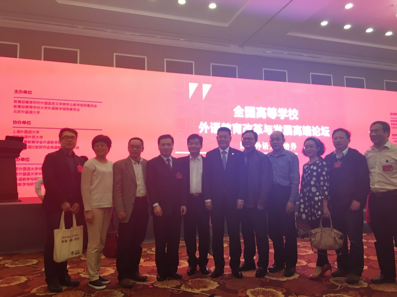 本网讯 2016年4月16-17日,全国高等学校外语教育改革与发展高端论坛在北京召开。本届论坛吸引了来自全国高校外语教育专家学者和外语院系管理者近2000人参会。我院温宾利院长、王斌书记、冯光武副院长、姜琳副院长等一行7人应邀参加了本次会议。