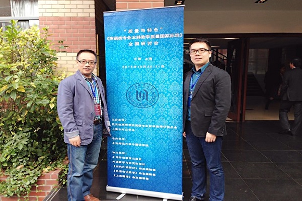本网讯 2015年10月31日,由教育部高等学校英语专业教学指导分委员会和上海市外文学会主办,上海师范大学协办的“质量与特色——《英语类专业本科教学质量国家标准》全国研讨会”在上海召开。我院冯光武教授及潘鸣威博士受邀参加了此次会议。