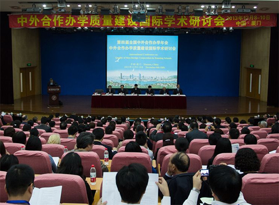 本网讯 2013年12月8-10日,在教育部国际合作与交流司的支持下,厦门大学中外合作办学研究中心、福建省教育厅、中国高教学会中外合作办学研究分会主办的第四届全国中外合作办学年会、“中外合作办学质量建设”国际学术研讨会在厦门国家会计学院隆重举行。来自美国、加拿大、英国、我国内地和香港等十几个国家和地区的400多位教育界代表出席了本次会议。