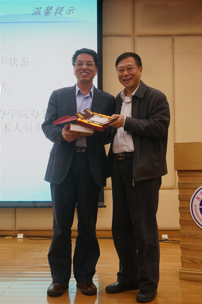 讲座伊始,陈建平代表学校向王文斌教授赠送纪念品并合影留念。随后,温宾利向师生们介绍了王文斌的职称及学术成果,并对其到来表达了由衷的欢迎。