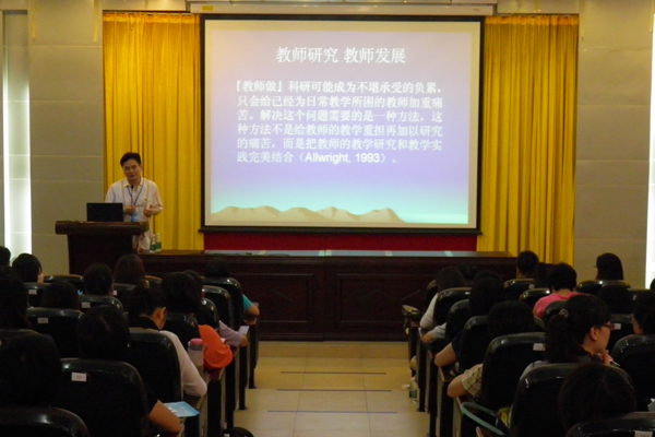 随后,欧阳护华为观众们详细介绍了“行动研究”这一历史悠久但近二十年来越来越影响广泛的研究方法。他表示,“行动研究”是指针对日常教学实践中一些细节的行动,以及针对这种行动的效果而展开的研究;这其中也包括解决实际问题的同时所进行的研究。而“行动研究”的目的既在于改善教学处境,又在于扩展教师的知识、提高教师的研究分析能力。在此基础上,欧阳护华介绍了“行动研究”的具体过程:即在实践中发现问题,并对问题产生的原因提出假设;而后,教师要以此为基准,构造解决问题的可能方案,并在教学实践中对这些方案进行检验和补充;最后,教师须对行动的效果进行评估,以使自己的教学行动不断得到改善。欧阳护华还强调,“行动研究”的过程应该是一个不断进行的循环过程。
