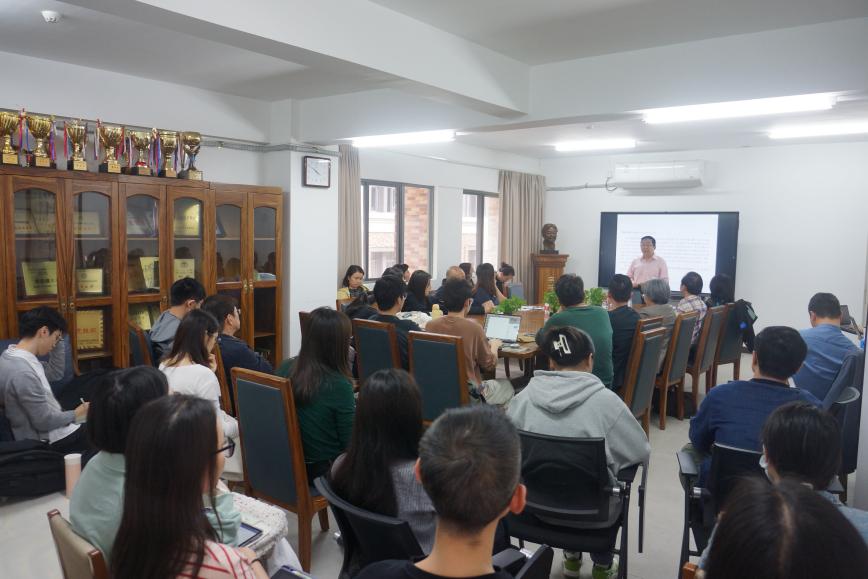 郭教授在讲座中还以自身与美国欧明道大学谈判的现实故事,赛珍珠作品中讲述的文学故事,以及自身对赛珍珠研究的学术故事为例,阐释了“究竟如何讲好中国故事”。讲座最后,郭教授还就国内对“外语专业”与“文科”的纷争,提出三个至关重要:学好英语至关重要、讲好中国故事至关重要、讲好全球故事至关重要。在交流环节中,张欣教授向郭教授请教如何做好时间管理。郭教授指出要抓住琐碎时间进行思考与写作,并借此进一步强调人文知识分子应勇于发声与写作。整个讲座氛围愉悦而深刻,与会师生受益匪浅。