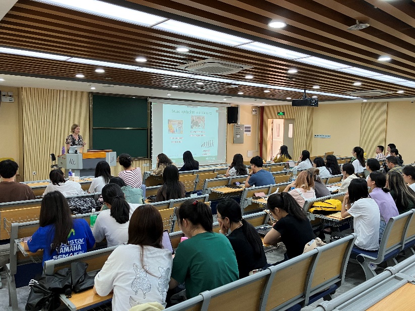 本网讯 10月17日上午,新西兰惠灵顿维多利亚大学高级讲师、博士生导师Sasha Calhoun博士应英语语言文化学院邀请,在第一教学楼南楼215思明讲堂做学术讲座,题为“Natural or social? Where sound symbolic associations of pitch come from and why they matter for language processing”。此次讲座由英文学院王新清老师主持,全校五十余名师生于线上线下同时参加。