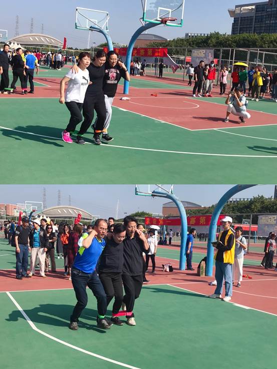 英文学院工会教职工积极参加立定跳远、铅球、800米长跑、4×100米接力等田径项目和网球颠球、投球进篮、两人三足、鸳鸯背瓜、红旗飘飘、袋鼠跳等趣味运动会项目,获得了较好成绩。