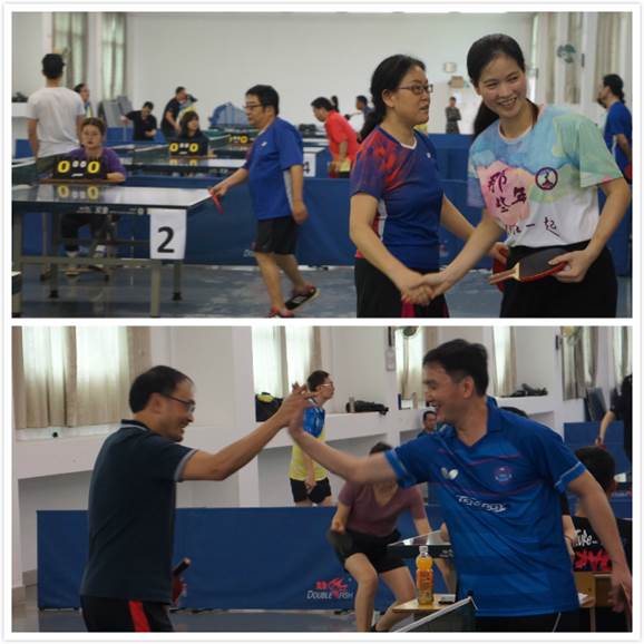 本网讯 4月20日,由大学工会组织的2019年教职工乒乓球团体赛在北校区举行,英文学院教工乒乓球队奋力拼搏、团结进取,后勤人员和拉拉队员用心服务、倾情助威,最终获得了今年教职工乒乓球赛团体第一名的好成绩。