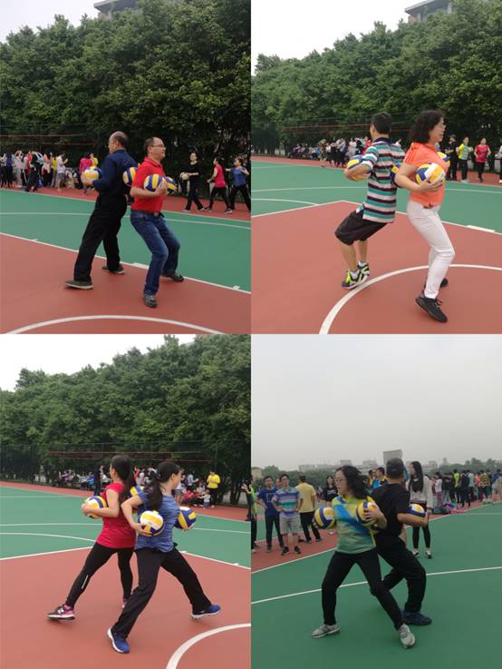 比赛设置了鸳鸯背瓜、网球颠球、红旗飘飘、集体跳大绳、单脚火车跑、袋鼠跳接力赛、往返接力运球上篮、绑腿跑等项目,将竞技与娱乐相结合,着重培养教职工的集体意识和团队协作精神。在简短的热身之后,我院参赛教职工就投入到紧张、活泼、有趣的比赛中,大家相互配合、奋勇争先,赛场上掌声、喝彩声、笑声、欢呼声此起彼伏。