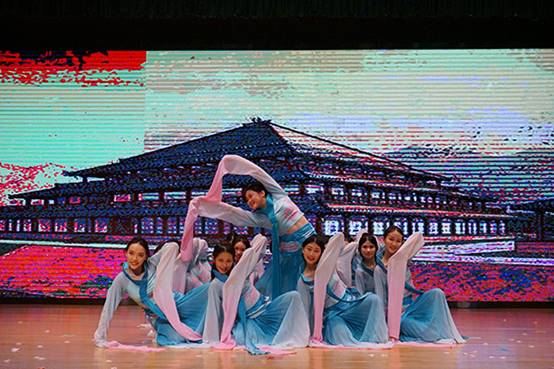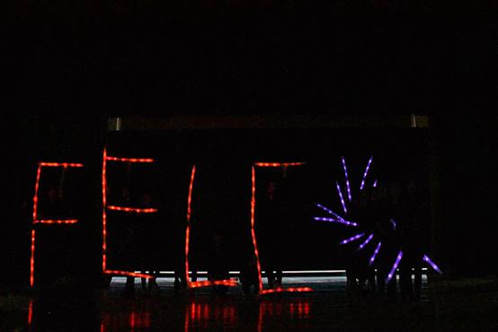 紧接着,晚会的第二部分由英文团学的集体节目开场。幽默的方言配音,描绘了大学生活中的点滴趣味;团学干部用荧光棒拼凑出的FELCLOVE YOU字样以及团委书记王晞老师的热情参与,让观众感受到了英文团学的活力四射,现场响起阵阵欢呼。接下来是1707班和1710班的节目Howto find you?。他们将《西游记》中的故事加以改编并融入舞蹈、音乐多种元素,令现场观众耳目一新。下一个节目是校舞队的舞蹈Affection for water sleeves。她们用《诗经·小雅·采薇》中的名句“昔我往矣,杨柳依依。今我来思,雨雪霏霏”编排出了古色古香的中国舞。漫舞的轻纱,扶风弱柳般的身姿把观众的思绪带回了千年前的亭台轩榭。