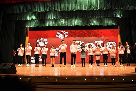 晚会的第三部分由1703班的节目Surprising作为开场。这个小品讲述了人生起落、世事无常,并采用歌词来作为剧中人物的台词,令观众感同身受。接下来是由院舞队带来的热舞Heart beating,帅气的动作配上劲爆的音乐再次点燃了观众的热情。之后的院话剧队的节目overwhelming power of friendship向观众们展示了浓浓的宿舍姐妹情,完美体现了大学生活的生活常态。全场的最后一个节目是由17级辅导员马骁和17级班导们带来的Waiting for Xiaoma’s growth。马骁幽默的表演和班导们各自的才艺展示让观众们惊喜连连。最后,他们向英文学院师生们表达了真挚的新年祝福。