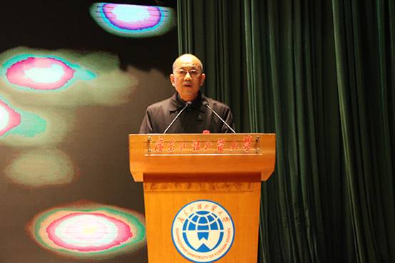 本网讯 12月14日19:00,以Light & Shade为主题的2018年英文学院迎新晚会在六教报告厅成功举办。大学教务处副处长余盛明、英文学院院长温宾利、副院长张欣、英文学院党委副书记何伟儒、2014级辅导员王栋、2015级辅导员贾春成、2016级辅导员兼团委书记王晞、2017级辅导员马骁及部分学院教师、学生家长出席了本次晚会。