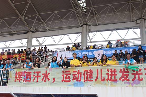 各学院的表演充分彰显了各自的精神风貌,观众们鼓掌连连。最后,英文学院的大型团体操表演——“全运惠民,健康中国”压轴出场,他们将武术、健美操、瑜伽、现代舞等完美结合,气势感染全场。