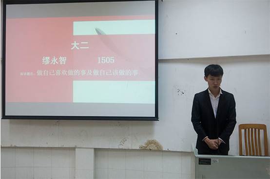 随后,大二级1505班的缪永智则认为实现理想的秘诀是寓学于乐。他直言,人生追求的应是自由。诸如计划小纸条、志愿服务工作、曼妙的钢琴曲子、日常的点滴随笔等,都能成为生活中的小浪漫。此外,缪永智认为参加学院的比赛和体育活动都有助于自我修养与团队协作能力的提升。答问中,他希望同学们在练习口语中重视英语学习的输入与输出,幽默风趣的发言为活动再添了几分愉快和温馨。