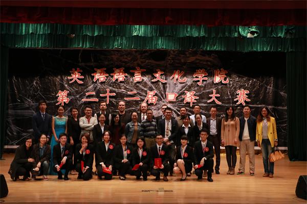 随后的颁奖仪式气氛热烈,全体嘉宾、辩手译员合影留念。在一片掌声和欢笑声中,英文学院第二十二届口译大赛圆满落下帷幕。
