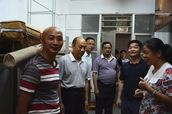 随后,温宾利、王斌、何伟儒、贾春成及团学主要学生干部来到新生宿舍慰问了新生。温宾利首先欢迎新生们加入英文大家庭,接着热情地与新生和家长们进行了交流。