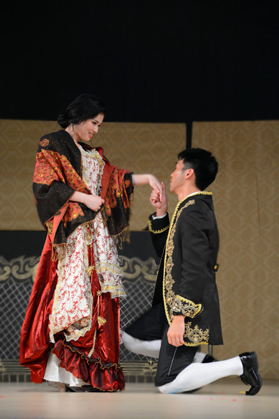 本网讯 5月28日下午2时,英文学院第十七届戏剧大赛第二次彩排在云山会堂进行。外教Duncan,英美文学系主任刘胡敏等指导老师到场观看了表演,并为各剧组提供了宝贵的指导意见。