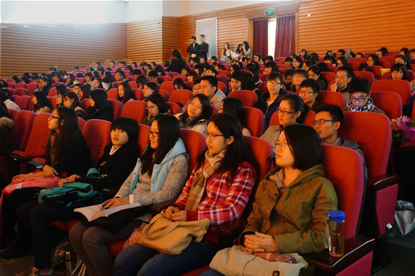 最后,古煜奎老师对本场大赛作出点评。他一方面赞扬了辩手和译员的优秀表现,另一方面又指出了译员们存在的问题,如特定词语翻译不够准确,与辩手幽默的语言风格不符等。对此,他以辩论中的高频词“僧多粥少”及其译词“overpopulated”为例,指出了把握词语隐含信息的重要性。此外,古煜奎还以他对口译的理解鼓励有志从事这一行业的同学们:口译不仅仅是一项职业,更是一个让人了解这个世界的窗口;而在这个职业中,态度往往比能力更重要,从业者要拥有正确的态度才能走向成功。