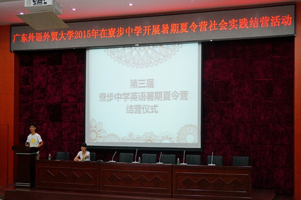 本网讯 2015年08月01日,广东外语外贸大学英文学院三下乡GTL3.0英语夏令营活动在结营仪式中落下帷幕,至此,在寮步中学为期七天的教学实践活动正式结束。