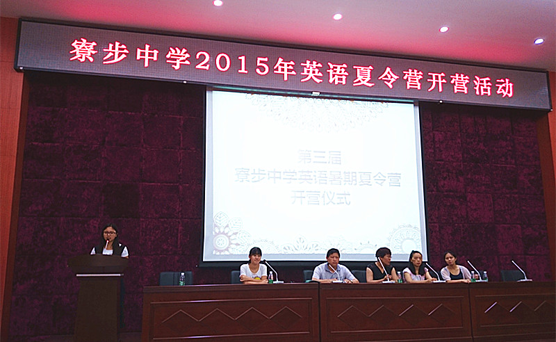 本网讯 2015年7月26日,广东外语外贸大学英文学院暑期三下乡社会实践活动在东莞寮步中学正式开始。上午9时,寮步中学部分校领导、老师、学生以及GTL3队员在寮步中学多媒体大厅参加开营仪式。