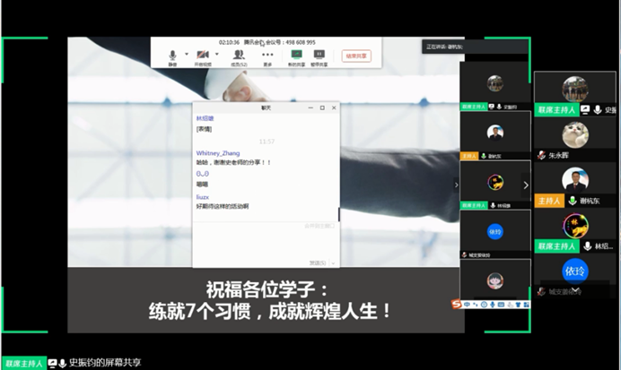 网络讲座最后,史老师耐心回答了同学们关心的各种问题,并建议同学们100天实现一个小目标,练就7个习惯,成就辉煌人生!